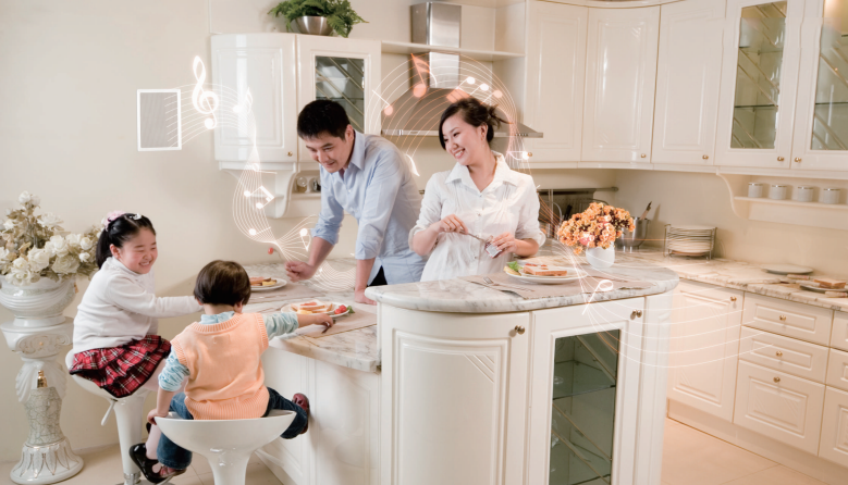 A central control can be set up to manage the distribution of audio to any room in your household, making it possible to have high-quality audio anywhere. Your audio management system can also store and retrieve playlists for special occasions like parties and gatherings to keep music hassle free. Speakers in the distributed rooms are carefully coordinated with their surroundings to provide an appealing visual presentation, and can be placed strategically for maximum audio enjoyment.
